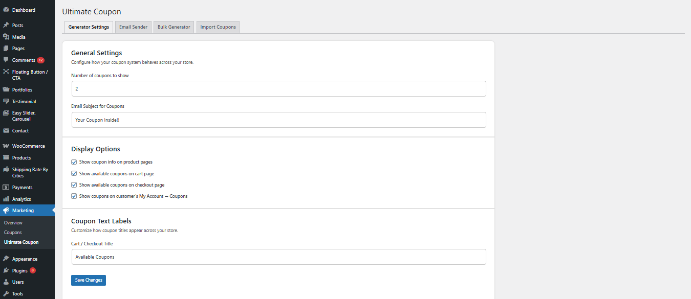 Ultimate Coupon Generator extends WooCommerce’s default coupon system with bulk generation,